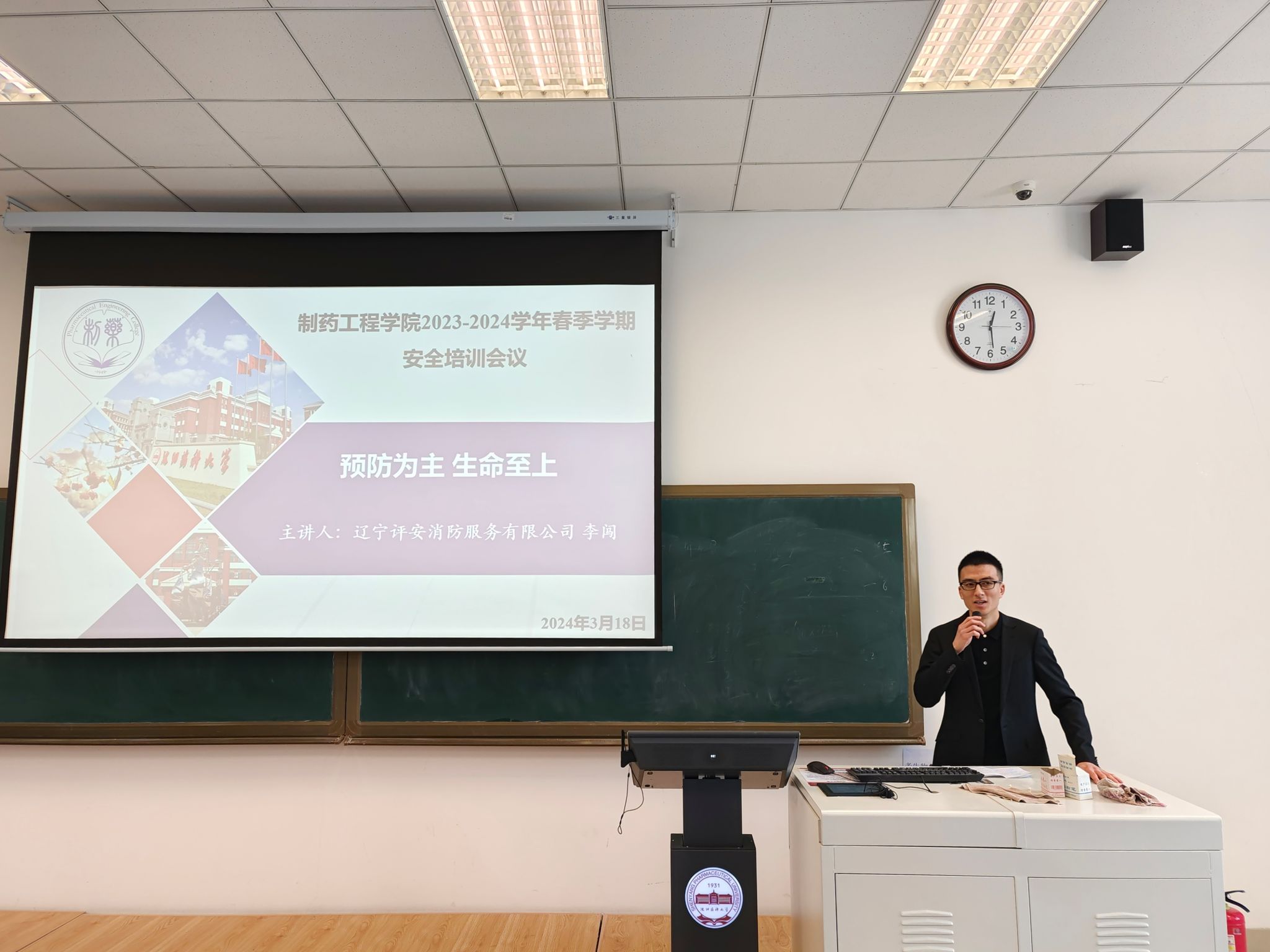 为认真贯彻落实校党委创建平安校园的要求,进一步做好学院消防安全管理工作,增强师生消防安全意识及面对突发状况的应急处置能力,365beat体育官网于3月18日邀请中国消防协会会员单位辽宁评安消防服务有限公司宣讲员李闯在播馨楼204和大学生活动中心多功能厅作题为“预防为主 生命至上”的专题讲座。学院全体教师、研究生及部分本科生参加了本次讲座。