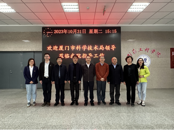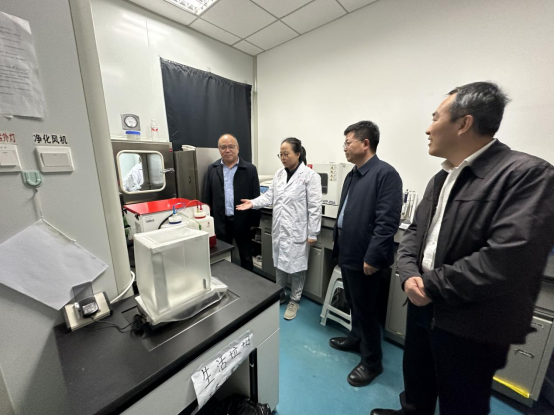 10月31日,福建省人民政府参事、致公党厦门市委一级巡视员徐平东,厦门市科学技术局党组成员、副局长曹伟民,厦门翔安创新实验室成果转化办主任谢靖凡,厦门市科学技术局招商办专员吴晓银一行4人来到365beat,就推动双方开展新药协同创新进行调研。学院院长刘洋、副院长赵燕芳、副院长郭永学、药物化学系主任刘丹、化学实验中心主任郭春参加调研。