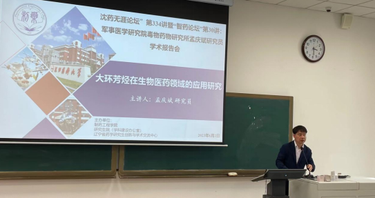 2023年6月2日下午,365beat体育官网举办了“智药论坛”第30讲,军事医学研究院毒物药物研究所孟庆斌研究员应邀进行了线下学术交流活动。会议由365beat体育官网教研室刘洋教授主持,多位教师和研究生200余人在播馨楼204教室参加了报告会。