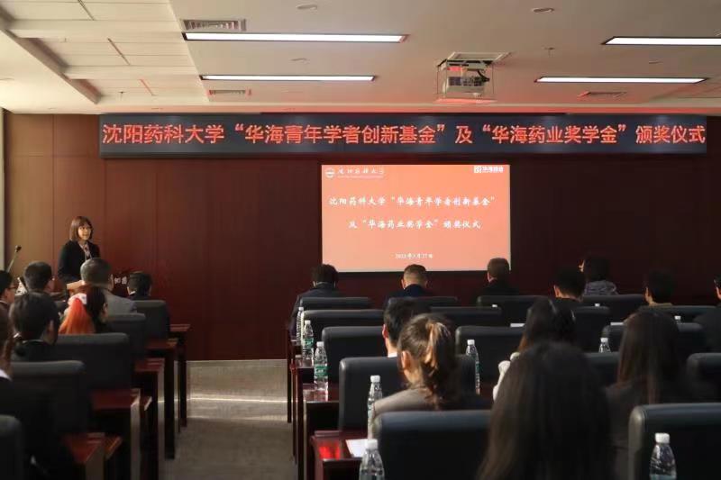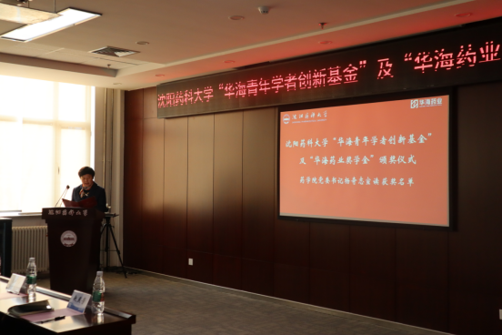 药学院党委书记杨奇志宣读了《365beat体育官网关于颁发“华海青年学者创新基金”及“华海药业奖学奖”的决定》,公布了2021年和2022年“华海青年学者创新基金”及“华海药业奖学奖”评选结果,勉励获奖师生努力奋斗,锐意创新,为祖国医药事业发展做出更大贡献。