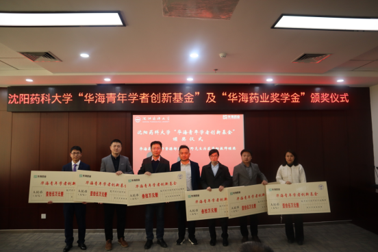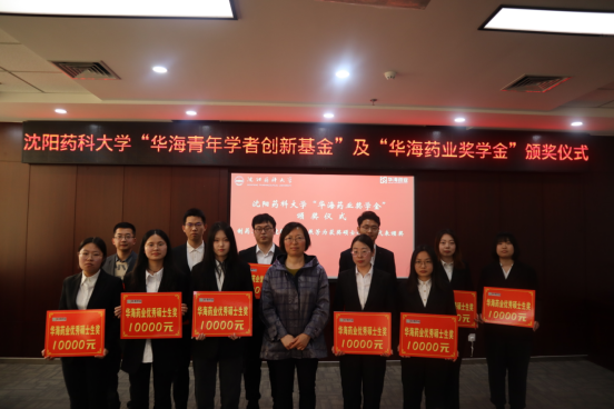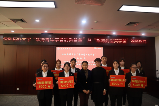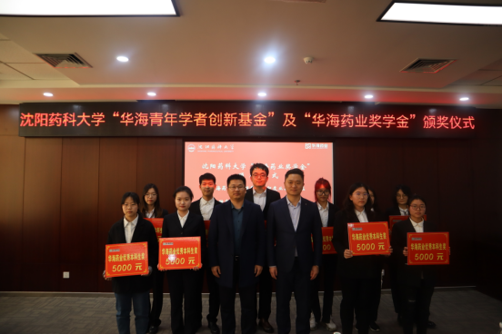 华海药业嘉宾和学校领导为获资助教师和学生颁奖。华海药业人力资源部总监吴野先生为张宇等六名获得“华海青年学者创新基金”的青年教师颁奖。华海药业原料药事业部副总经理朱伟为巩丹丹等五名获得“华海药业奖学金”的博士研究生代表颁奖。365beat体育官网副院长赵燕芳为王硕等十一名获得“华海药业奖学金”的硕士研究生代表颁奖。华海药业制剂质量研究部高级总监何伟玲、国际销售中心印度业务部总监钟声、国际销售中心人事经理赵仁杰和学校招生就业处副处长董晓辉为王怡等二十名获得“华海药业奖学奖”的本科生代表颁奖。