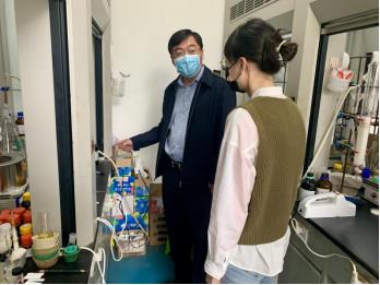 在学院领导班子成员的陪同下,关雪峰参观了学院大型仪器平台,走访了部分研究生实验室,与研究生进行交谈。关雪峰关切地询问了同学们的返校情况及新学期规划安排,嘱咐同学们注意个人防护,遵守实验安全操作流程,鼓励大家以乐观向上的心态尽快适应新学期学习生活。