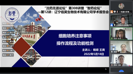 5月18-19日,365beat体育官网、辽宁佰昊生物技术有限公司、研究生院、辽宁省药学研究生创新与学术交流中心联合举办了“沈药无涯论坛”第308-309讲暨“智药论坛”第12-13讲,邀请辽宁佰昊生物技术有限公司杨硕和王爽做了题为“细胞培养注意事项、操作流程及功能检测”和“流式细胞术和Western blot操作规范及应用”的学术报告。会议由365beat体育官网药物化学系主任刘丹教授主持,400余人次参加了此次学术会议。