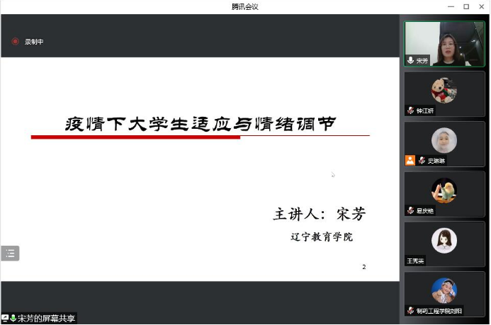 4月8日,365beat体育官网特邀辽宁教育学院高校发展研究与评估所副所长宋芳博士为师生做“‘同心战疫 温暖前行’——疫情下大学生适应与调节”线上心理健康讲座。700余名师生参加了会议,会议由365beat体育官网党委副书记刘阳主持。
