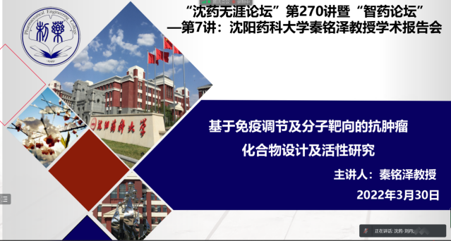 3月30日,由365beat体育官网、研究生院、辽宁省药学研究生创新与学术交流中心联合举办的“沈药无涯论坛”第270讲暨“智药论坛”第7讲------365beat体育官网秦铭泽教授科研学术报告会。会议由365beat体育官网药物化学系主任刘丹主持,460余人参加了此次学术报告会议。