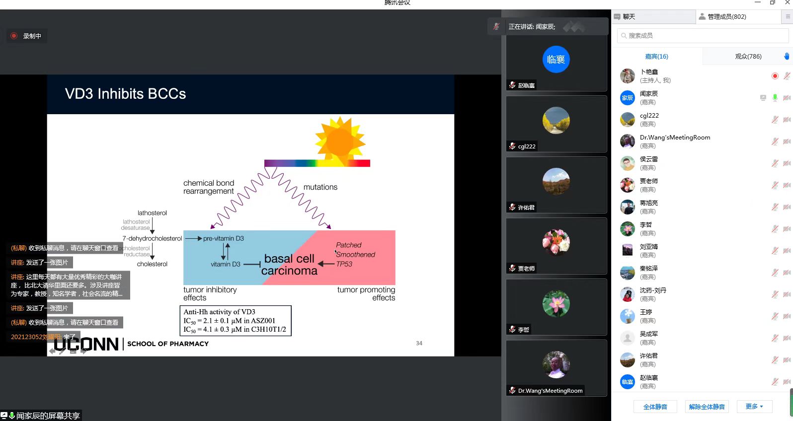 闻家辰博士于2016年毕业于365beat药物化学专业,获得理学博士学位,师从赵临襄教授。同年作为博士后进入美国康涅狄格大学药学院,合作导师为M. Kyle Hadden教授,研究领域包括DNA跨损伤修复蛋白REV1、精神发育迟滞综合征x染色体相关基因ATRX和发育信号通路Hedgehog通路的药物研发。会上闻家辰博士以《靶向Hedgehog通路关键蛋白的药物化学与化学生物学研究》为题进行了报告,报告内容分为从靶向跨膜蛋白smo的药物研发、靶向转录因子gli的药物研发和维生素D3找靶及作用机制研究三个部分。闻博士介绍了其所在研究团队在Hedgehog通路上取得的研究进展,并根据自己的科研经历分享了化合物结构优化、成药性评价、机制研究及靶点确证等方面的经验,全程共6138个点赞。