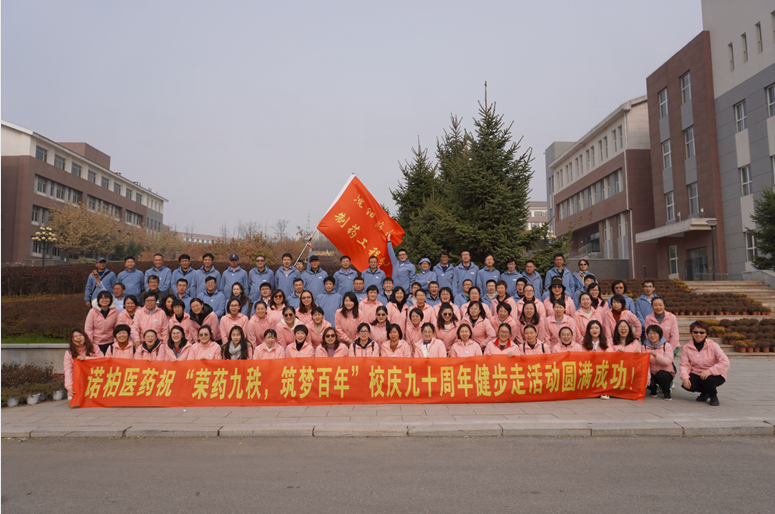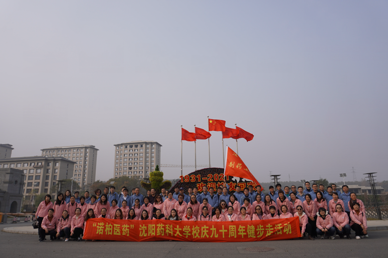 活动中,红色的院旗迎风招展,教职工们精神抖擞,步伐整齐,大家结伴同行,在健步走过校园内校庆景观标识处,共同回忆沈药的红色发展历程,脸上洋溢着喜悦与快乐,在享受健康运动带来的身心愉悦的同时,对沈药的未来发展无限憧憬。
