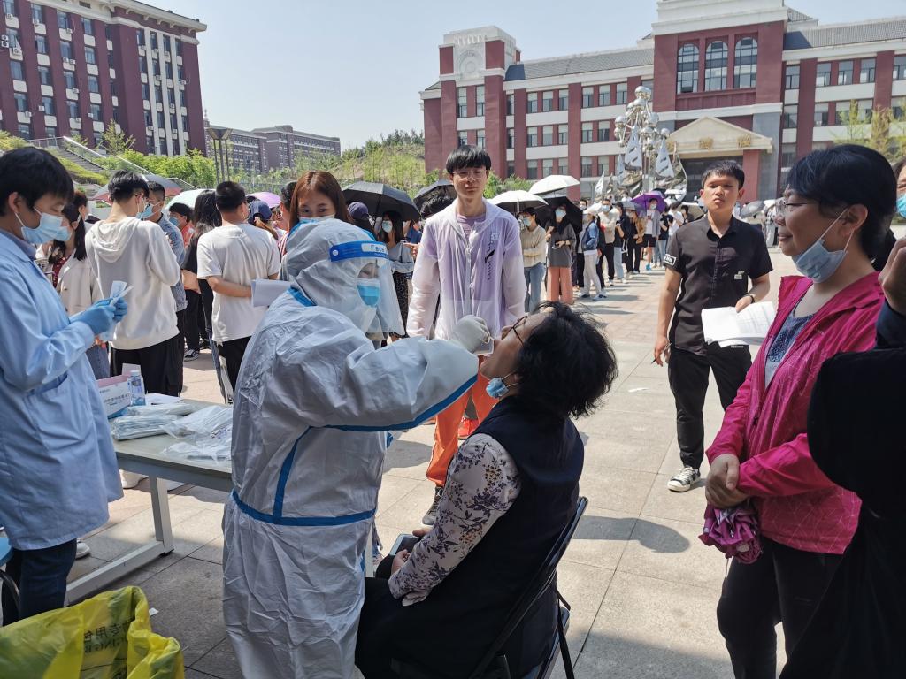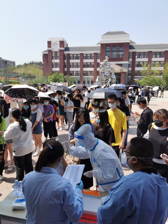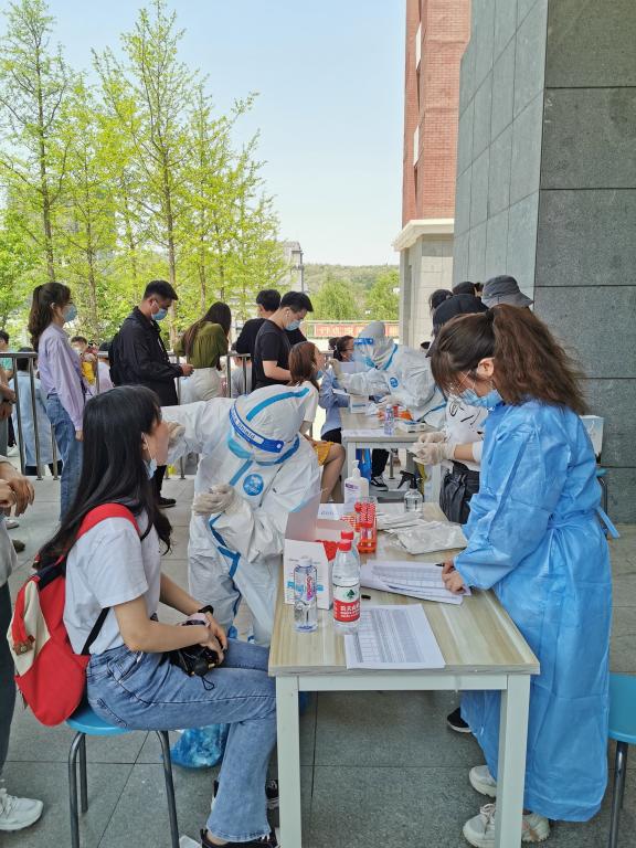 核酸检测采样工作于5月19日上午9时正式开始。学院在制药楼正门外合理划分区域,分别设置集合区、排队区及采样区,同时开通多条检测通道,所有待检人员严格遵守规定,提前集结,佩戴口罩,保持安全距离,分批分组检测后快速离场。