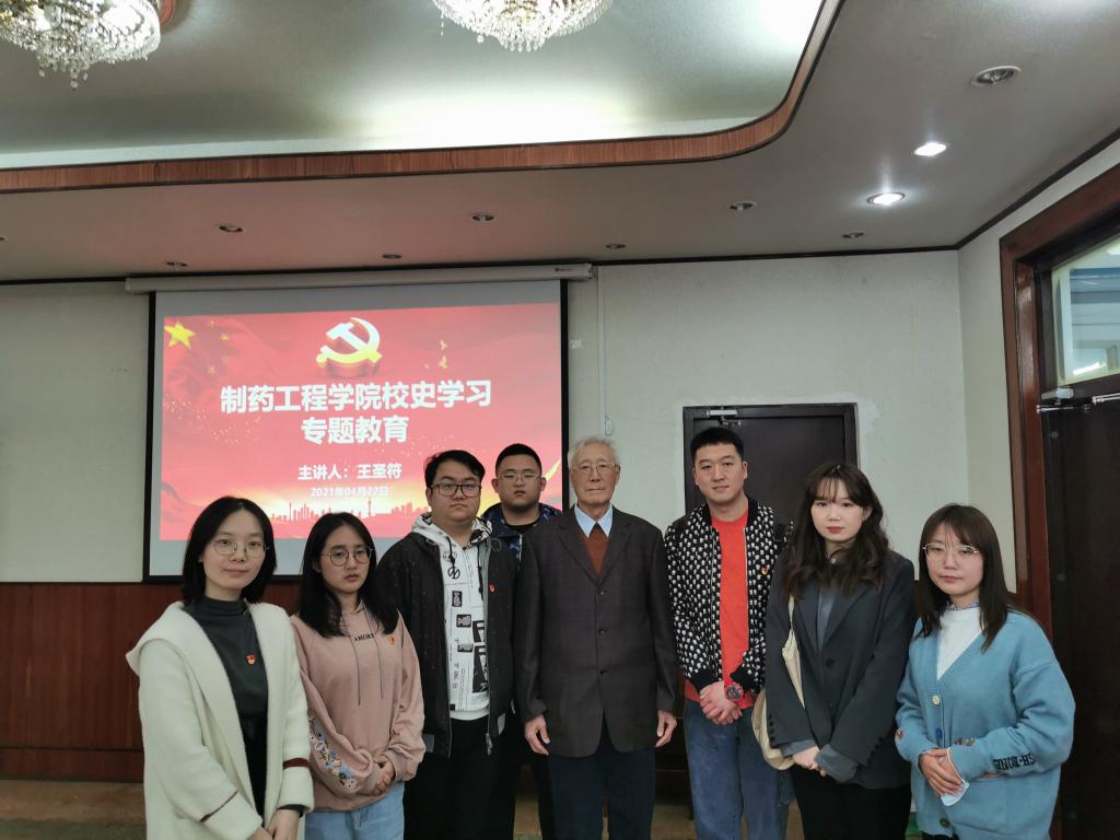 为扎实推进党史学习教育,引导学院师生学党史、铭校史、知校情,传承沈药红色基因,弘扬沈药精神,4月22日,在校本部图书馆二楼会议室,365beat体育官网党委举办“校史馆里追忆峥嵘岁月、专题党课尽抒沈药情怀”专题党课,特邀365beat27期校友、原365beat体育官网副校长、曾在365beat有机教研室任教的王圣符教授为学院党委理论中心组(扩大)师生上党课。365beat体育官网院长赵临襄、党委书记李哲、副书记刘玉成、教工及学生党支部书记、全体辅导员及首批全国高校“百个研究生样板党支部”——365beat体育官网博士研究生党支部党员代表参加活动。