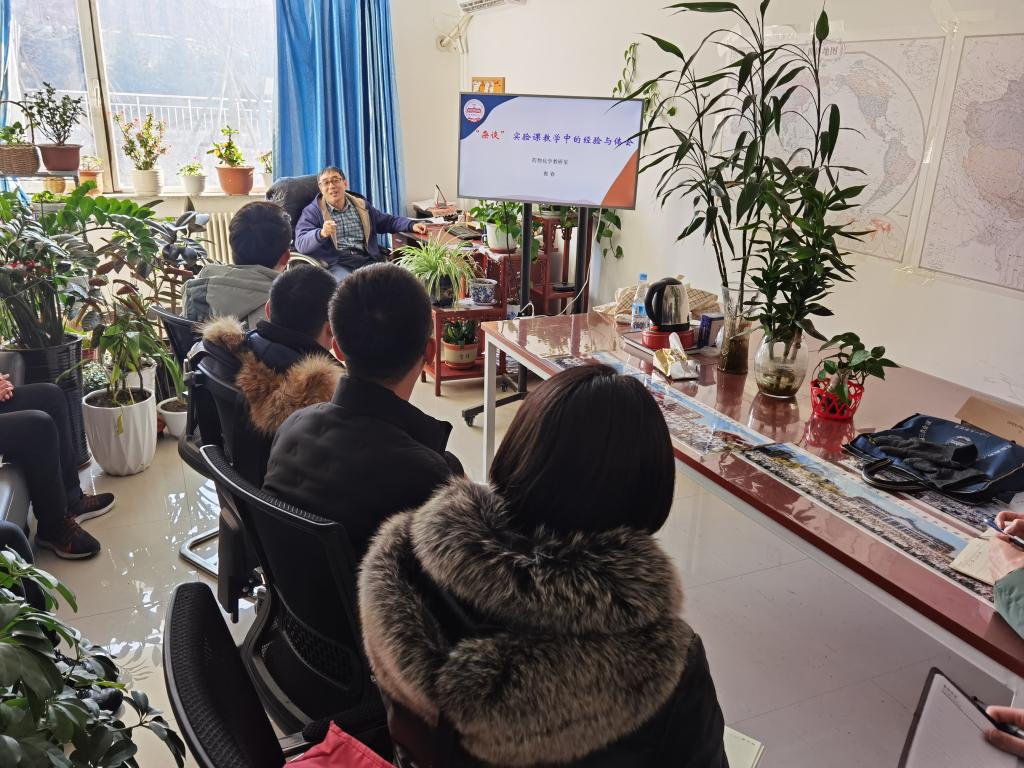 培训活动之一12月1日,学院邀请辽宁省教学名师、化学实验中心主任郭春教授在制药楼228办公室为学院青年教师开展了《实验课教学中的经验与体会》专题讲座,学院2019年及2020年新入职的青年教师参加了培训。郭春教授从实验教学的重要性、实验教学重点、实验报告批阅、实验安全等多角度做了详细介绍。本次培训对于提升青年教师的实践教学能力,使青年教师熟练承担实践教学课程,有效利用教学资源,指导学生顺利完成课堂作业具有重要意义。
