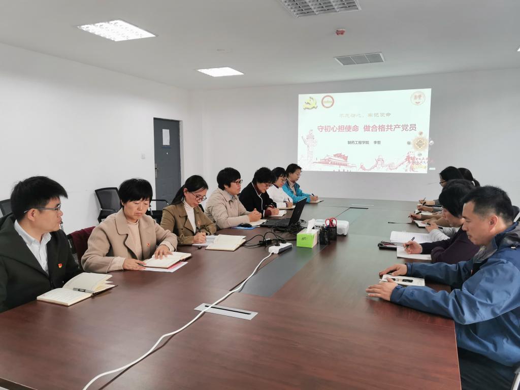 按照“基层党建制度落实年”的活动要求,11月17日,365beat体育官网党委书记李哲,以《守初心担使命 做合格共产党员》为题,在制药楼227会议室为无机化学、环境科学教师党支部上了一堂深刻生动的党课,党课由环境科学党支部书记张聪璐主持。