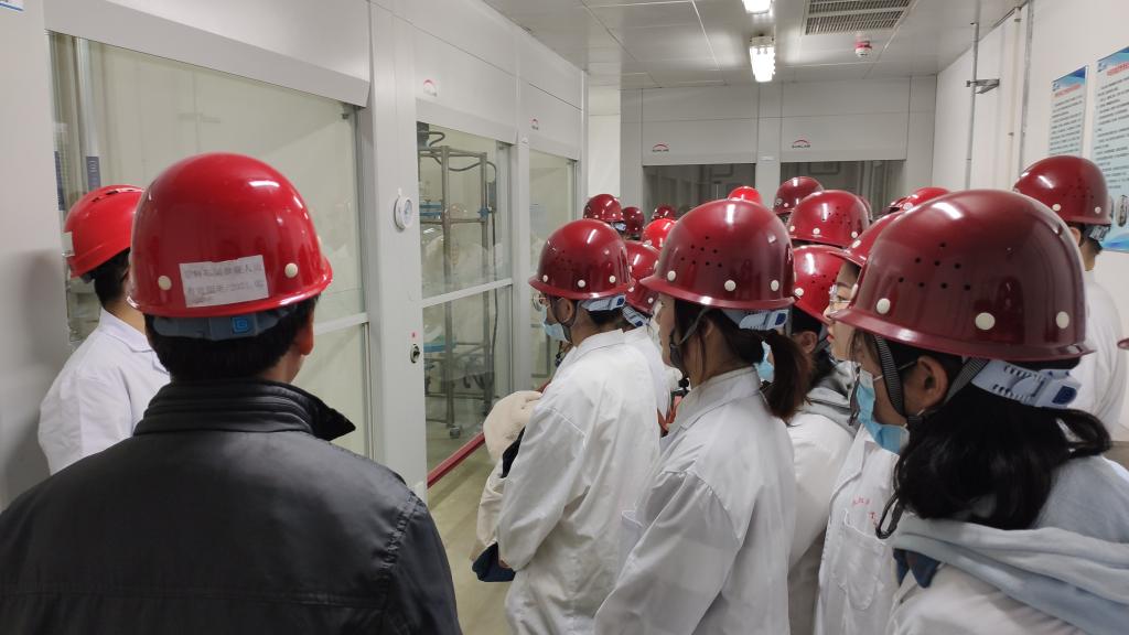 在实习期间应用化学专业全体学生先后参观了上海医药集团(本溪)北方药业有限公司质检大楼、原料研发车间和辽宁科硕营养科技有限公司左旋肉碱生产车间。在北方药业质检大楼,企业技术人员对科研实验室常用的气相色谱仪、液相色谱仪、自动熔点仪等仪器进行了详细的介绍。在原料研发车间,学生们重点参观了原料药合成工艺研究室中试实验室,对进行中试的各种设备有了一定的了解,对车间防爆知识有了一定的认识。在辽宁科硕左旋肉碱生产车间,学生们重点学习了环氧氯丙烷拆分和季铵盐的制备所涉及到的生产工艺、流程、设备和相关的仪表知识。在整个实习过程中,学生们实现了从实验室到中试实验室再到生产车间全过程的学习,认识了很多教学实验中认识不到的仪器设备,学习到了很多企业进行中试和生产的相关知识。