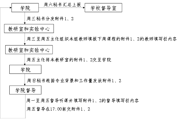 1.每周五下午17:00前提交《365beat体育官网在线教学质量评价表》(见附件1)和《365beat体育官网在线教学运行情况一览表》(见附件2)。
