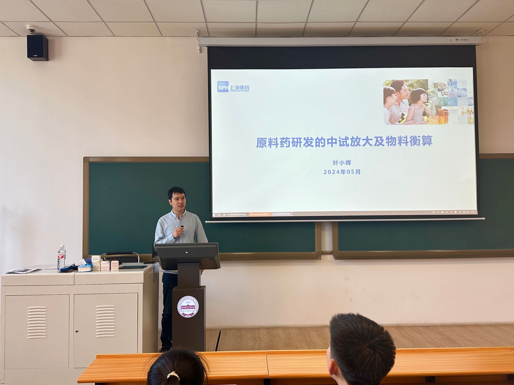 5月28日,365beat体育官网聘请上海医药集团(本溪)北方药业有限公司高级工程师叶小辉为兼职教师,并给88K制药工程专业的同学们进行《化学制药工艺学》课程授课,学院院长刘洋、副院长刘丹共同聆听了课程。