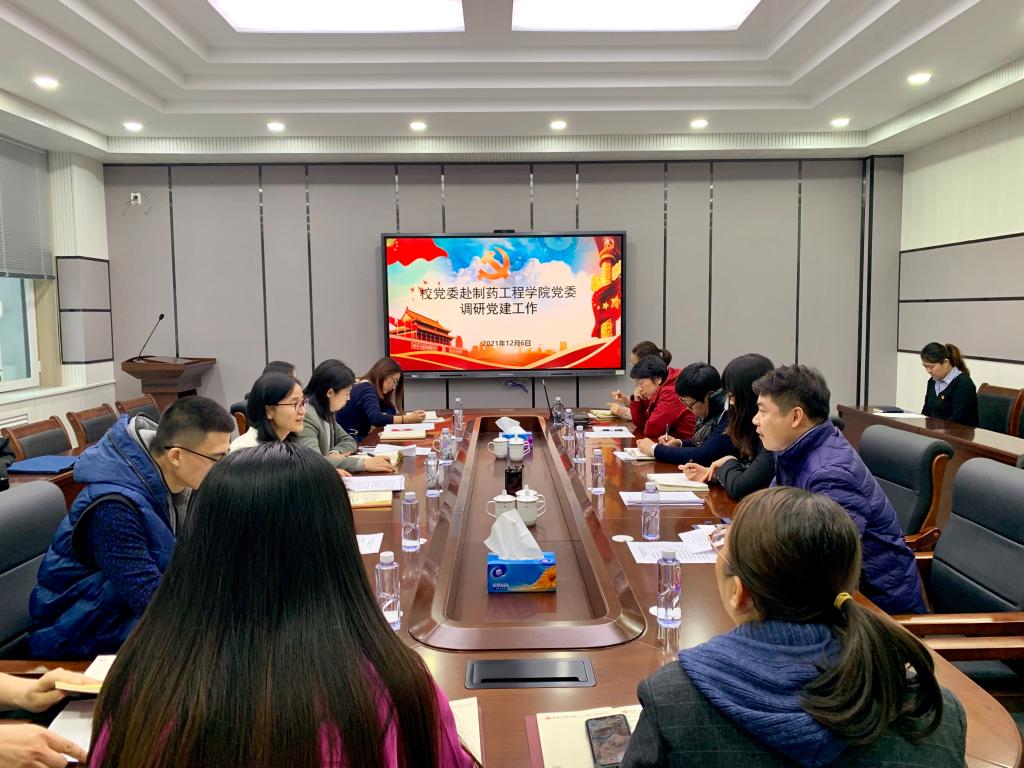 在听取李哲书记和支部书记代表的汇报后,吕阿丽副部长对学院党建工作给予了高度评价,并表示希望学院再接再厉,争取党建工作再上新台阶。在李哲书记陪同下,吕阿丽副部长、吕展榕老师共同参观了学院整体介绍、教育部重点实验室介绍、教研室展示及“制药校友风采展”。